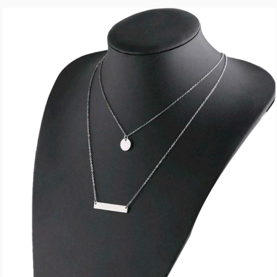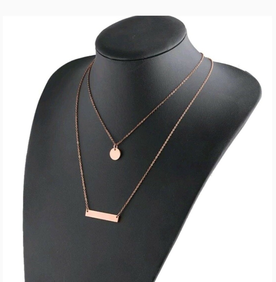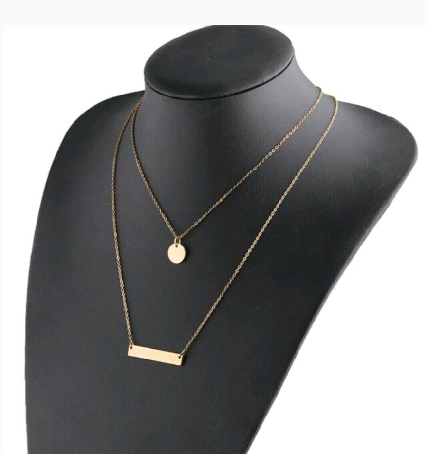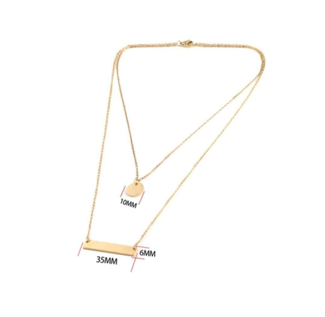 Modeschmuck Double Layer Gold Personalisierte Edelstahl Blank Bar Disc Charm Halskette