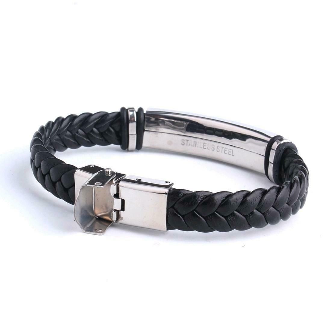 ID Armband Leder Armreif Edelstahl Armbänder für Männer