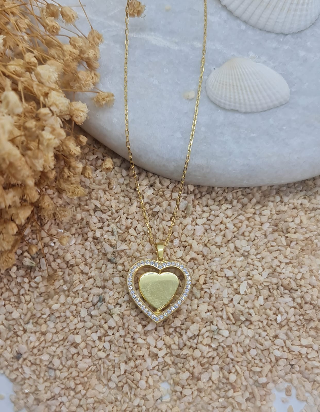 Zirkonia Herz Gravurkette Sterlingsilber 925